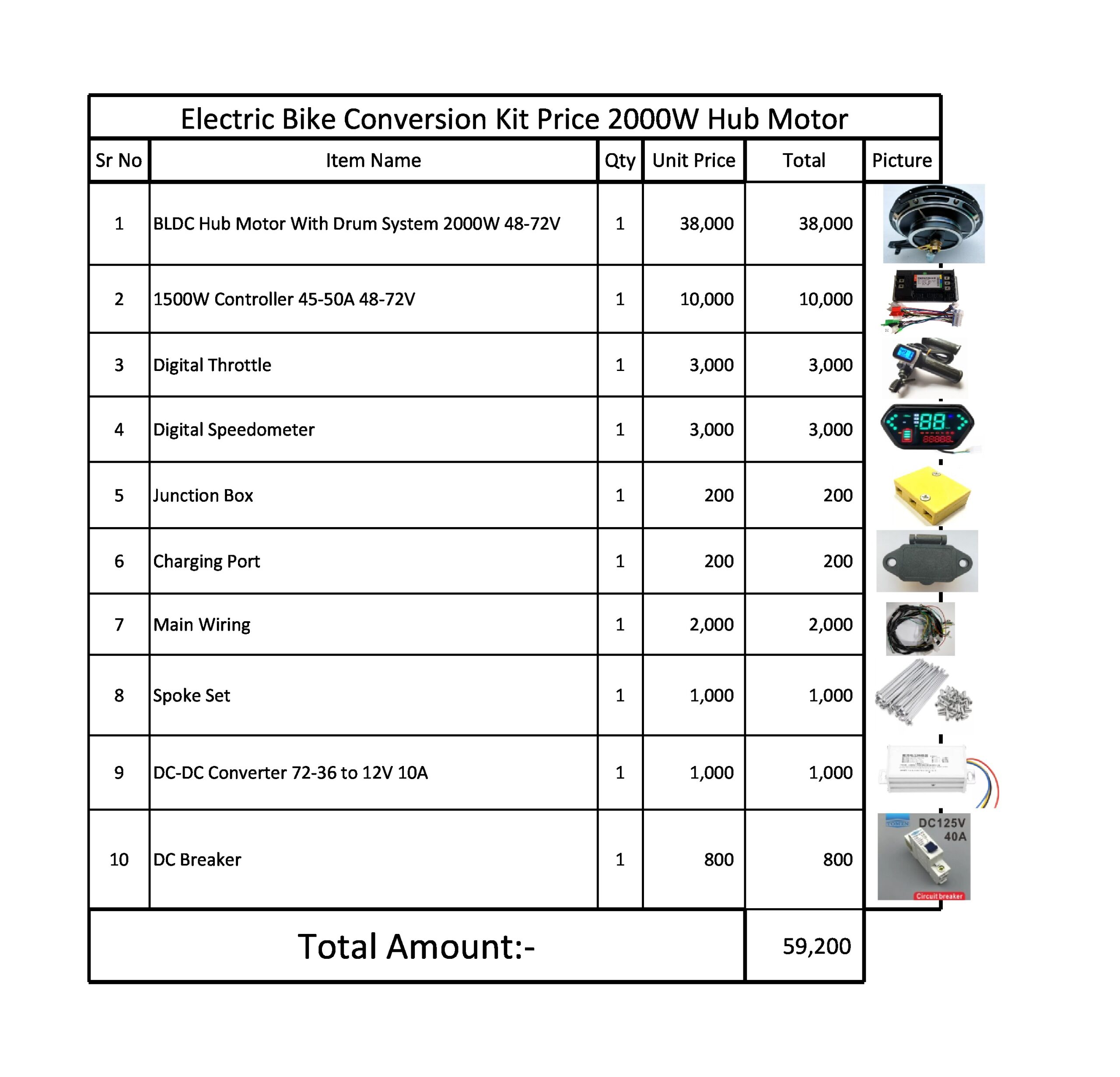 Whole Kit 2000W Hub Motor 50A Controller