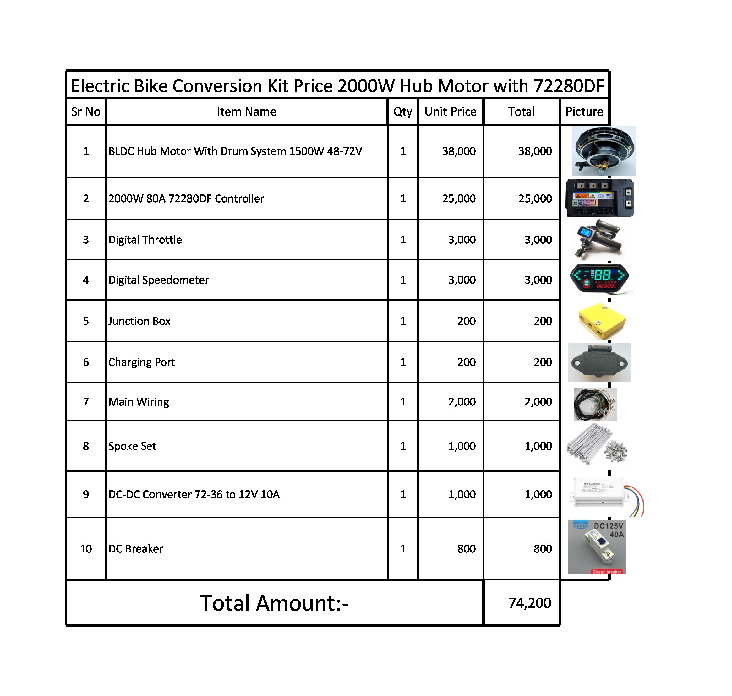 2000W 48-72V Electric Bike BLDC Hub Motor 80A Controller Set